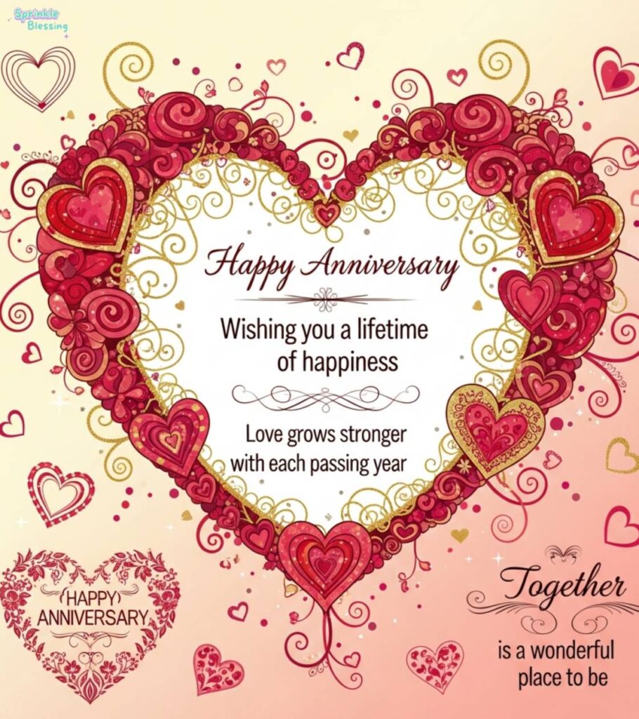 Romance is the heart of every wedding anniversary. Heart-touching anniversary wishes strengthen the emotional bond and celebrate memories together. These messages are perfect for a card, WhatsApp, or Instagram caption.