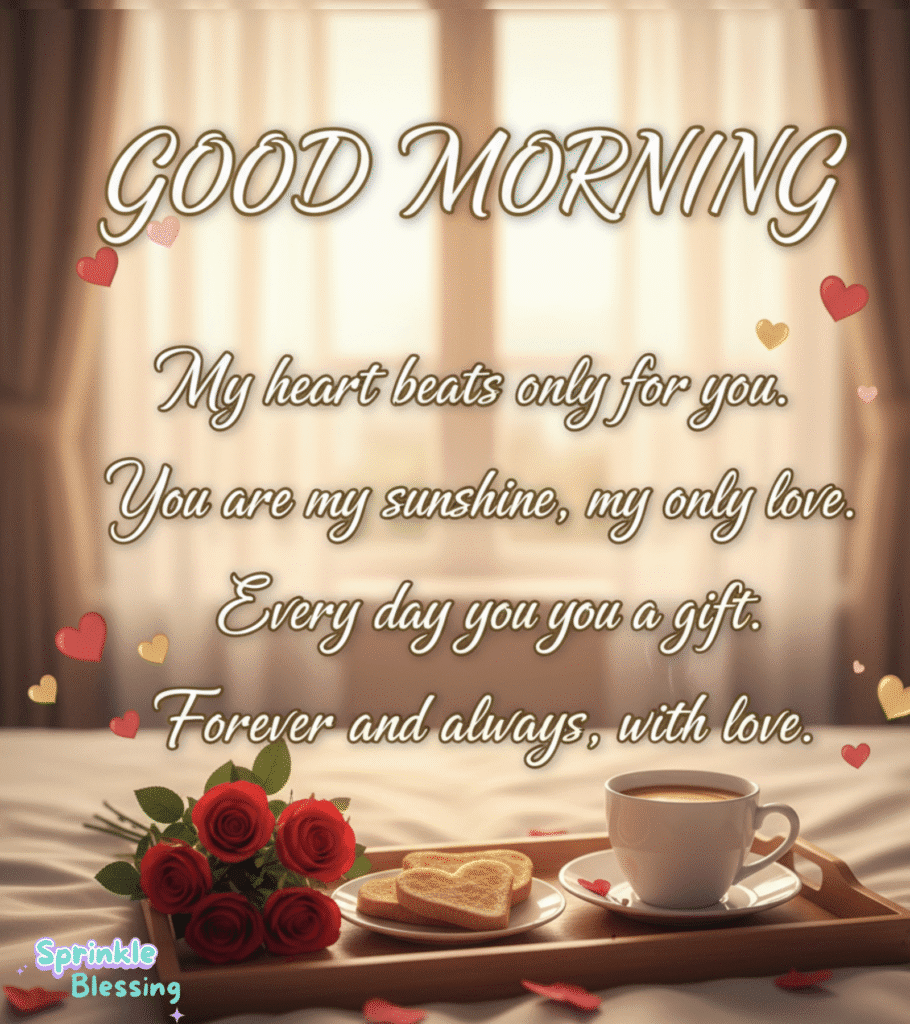- Simple lines like “Wake up to love and warmth” or “Good morning, my heartbeat” feel natural and romantic.